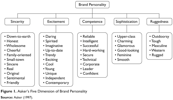 Once you’ve nailed down this foundation, find out the personalities or traits you think your audience would love. You can draw inspiration from Aaker’s brand personality model: